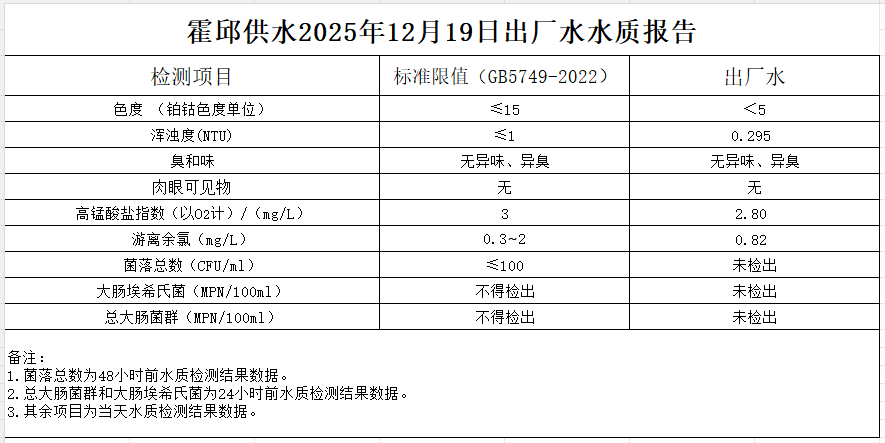 2025年12月19日出厂水水质报告