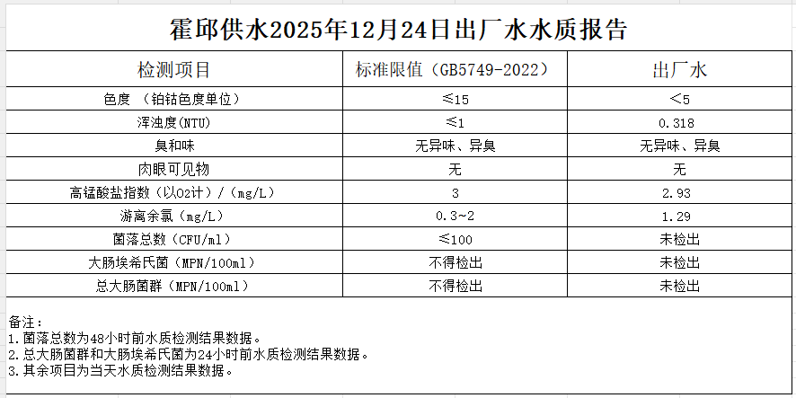 2025年12月24日出厂水水质报告